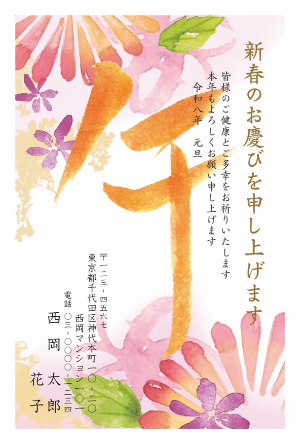 フラワーアート年賀状(4c027)